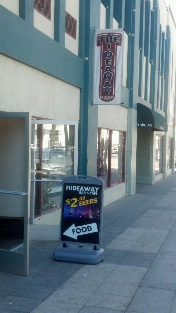 Cafe by day, club by night, The Hideaway Cafe offers a great place to have a great time in Riverside. Whether you're grabbing lunch during a day of antique shopping at the Mission Galleria Antique Mall or enjoying a night out with your friends, The Hideaway Cafe is the place to be.During the day, stop by for specialty sandwiches, salads and homemade soups. All of our food is made fresh with quality ingredients. Enjoy a craft beer and wine in our cozy underground cafe.After hours, join us for a great nightlife experience in the heart of downtown Riverside. Grab a beer, hit the dance floor or make your way to the billiards room.Our cafe is located in the basement level of the Mission Galleria Antique Mall. Stop in and have a local craft beer and one of our specialty sandwiches after you hunt for unique treasures in our antique mall, or visit us at night and join the party at The Hideaway Cafe!